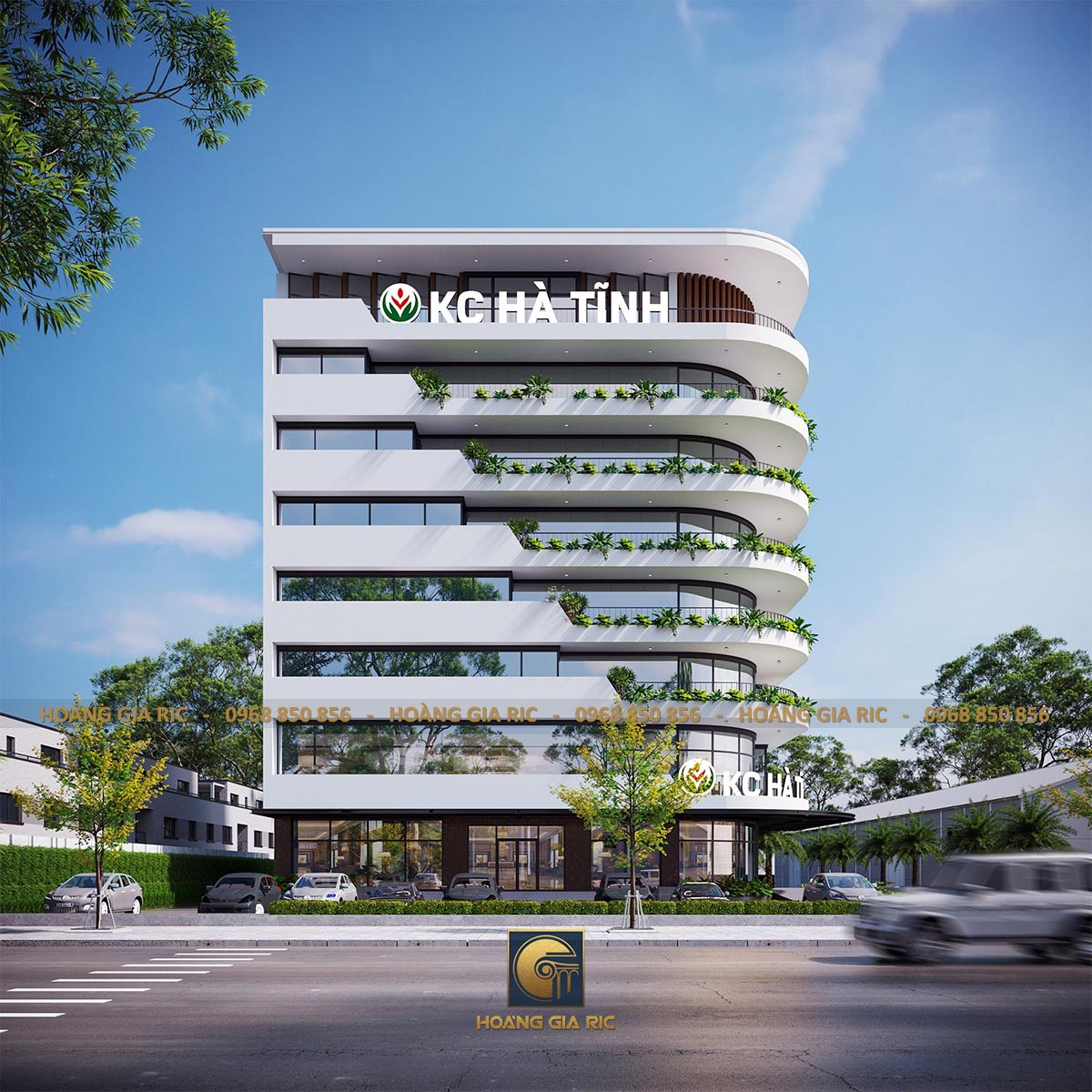 Tại dự án Tòa nhà Văn phòng KC Hà Tĩnh, đội ngũ Kiến trúc sư của Công ty Cổ phần Tư vấn Xây dựng và Nội thất Hoàng Gia (Hoàng Gia RIC) đã đề xuất 2 phương án thiết kế với 2 ngôn ngữ kiến trúc đối lập nhưng đều hướng tới mục tiêu: Xanh – Bền Vững – Hiện Đại.