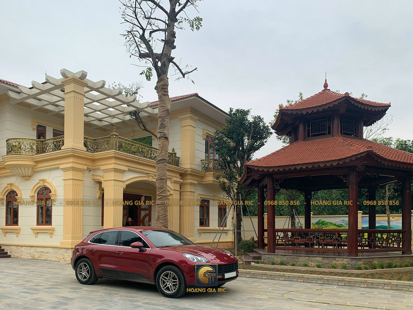 Công ty Cổ phần Tư vấn Xây dựng và Nội thất Hoàng Gia (Hoàng Gia RIC) trân trọng giới thiệu hình ảnh hoàn thiện, là thực tế thi công biệt thự sân vườn 2 tầng trên khu đất rộng 1755m2. Đây là một tổ hợp kiến trúc đặc biệt, nơi cuộc sống hiện đại hòa quyện cùng nét đẹp truyền thống và không gian sân vườn sinh thái.